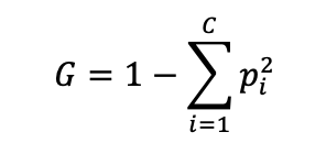 where [ pi ] is the proportion of samples in class [ i ], and [ c ] is the number of classes. A good split is one that reduces impurity the most.