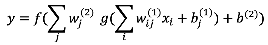Here, xi are input features (spectral values),wif(1) and wf(2) are weights, bj(1) and b(2) are biases, g is the activation function, and f is the output function.